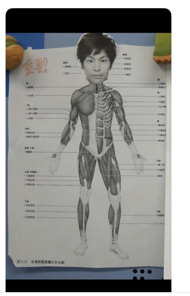 誰とはいいませんがとある輩が僕の試合パンプレットの写真を人体模型のプリントに張り付けて報告してきたことです。笑笑